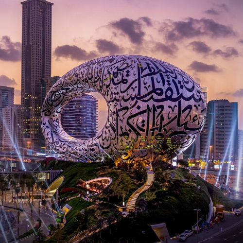 The Museum of the Future in Dubai is a visionary institution that explores cutting-edge technology, innovation, and the future of humanity. Its futuristic architecture, featuring a unique torus shape with Arabic calligraphy, is an iconic landmark. The museum offers immersive exhibits on artificial intelligence, space exploration, sustainability, and more, sparking curiosity about what's to come. A must-see for tech enthusiasts and anyone fascinated by the possibilities of tomorrow.